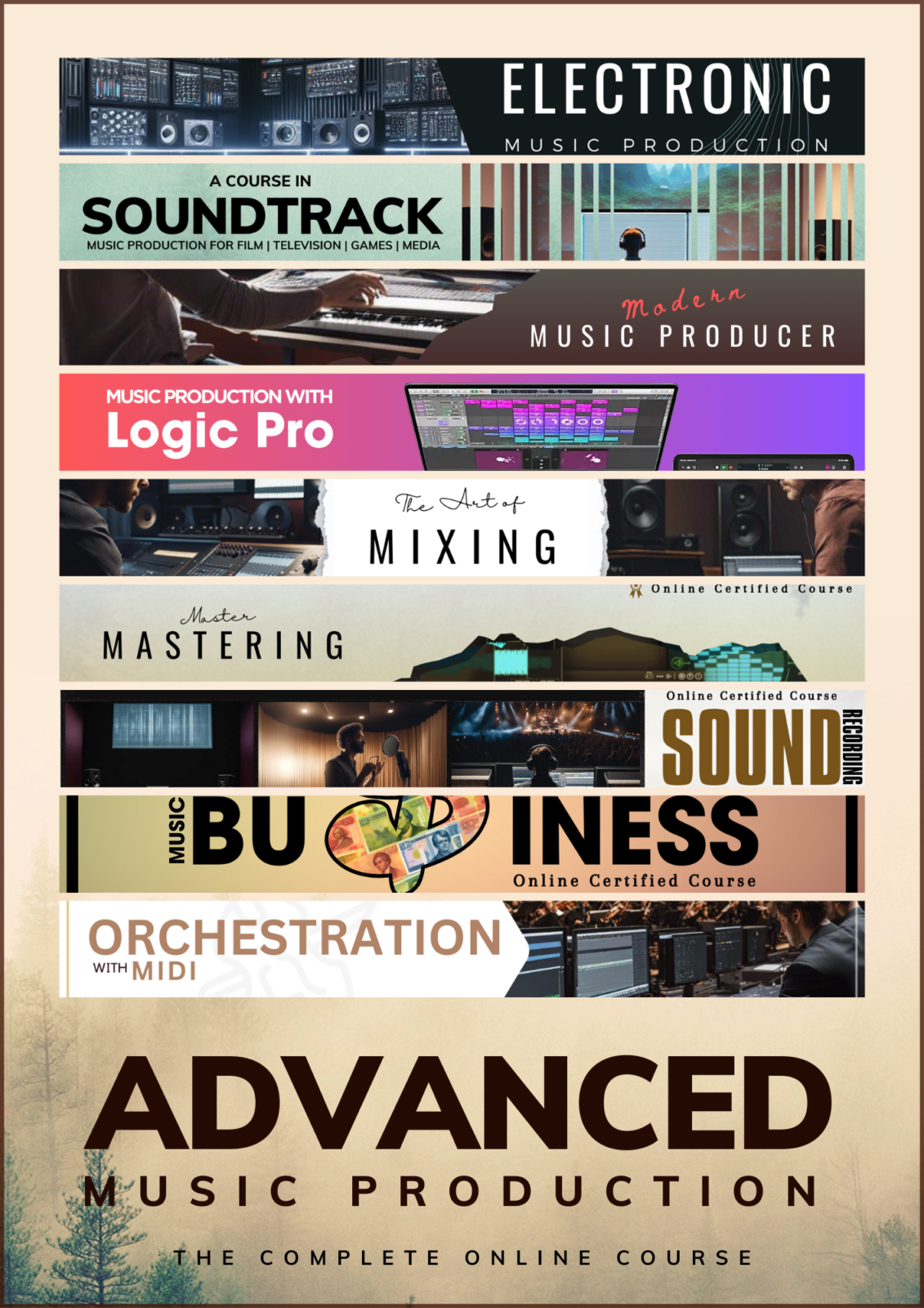 From foundational courses covering audio recording principles to advanced modules focusing on every aspect of modern music and sound creation, ensuring a comprehensive learning experience for aspiring and skilled producers.