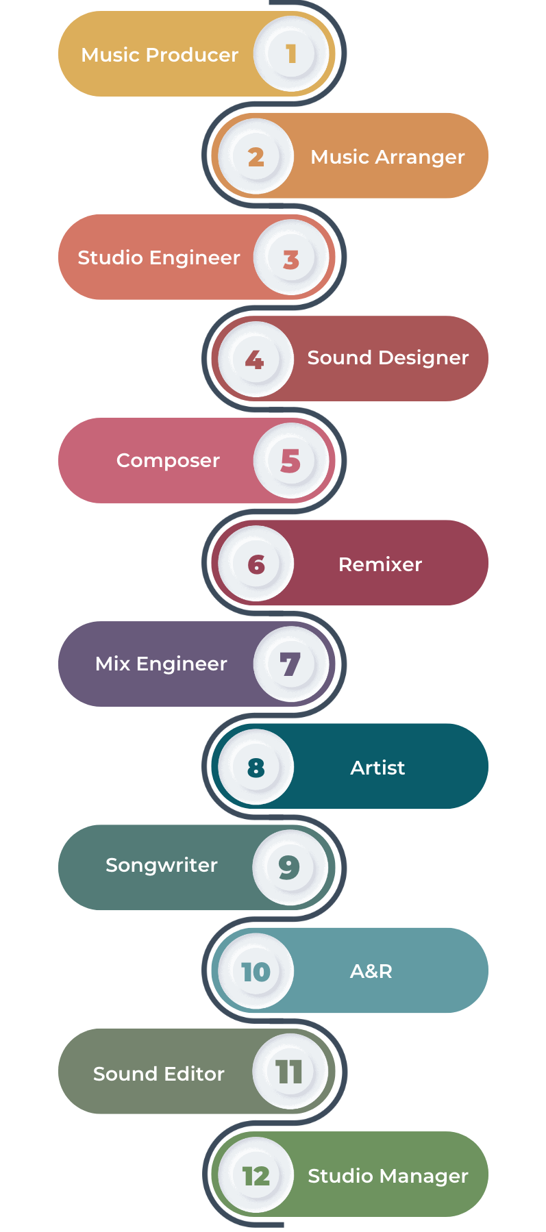 Production in sound gets categorized into several sub-sections which gives several opportunities in different fields such as: